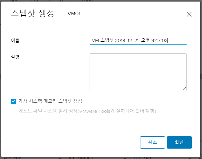 데이터스토어 브라우저에서 보이듯 vmsn, vmem, -000001.vmdk 파일이 생성된다.
