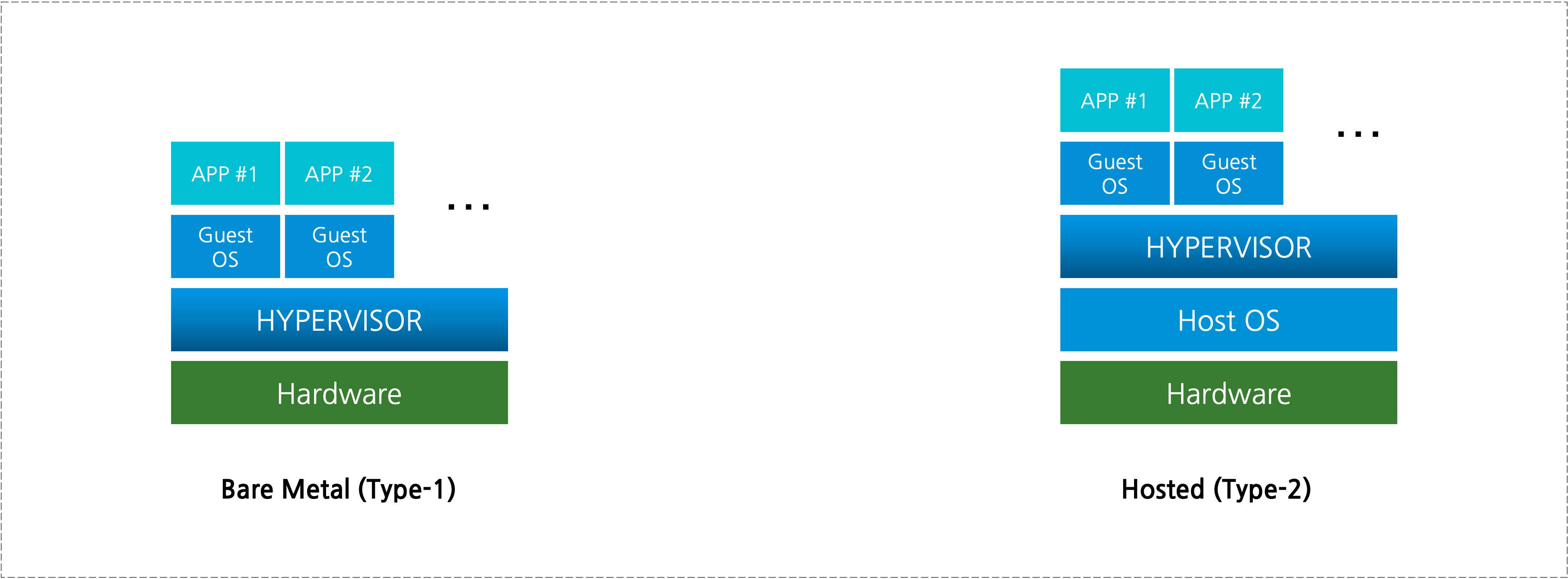 ※ 베어메탈의 경우, 전가상화/반가상화로 나눌 수 있다.