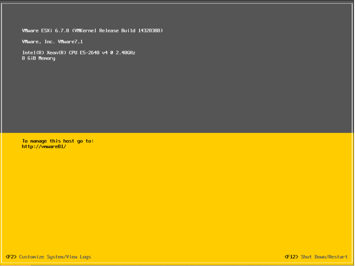 ESXi를 설치하면 볼 수 있는 화면으로, 해당 화면을 DCUI (Direct Console User Interface)라고 한다.