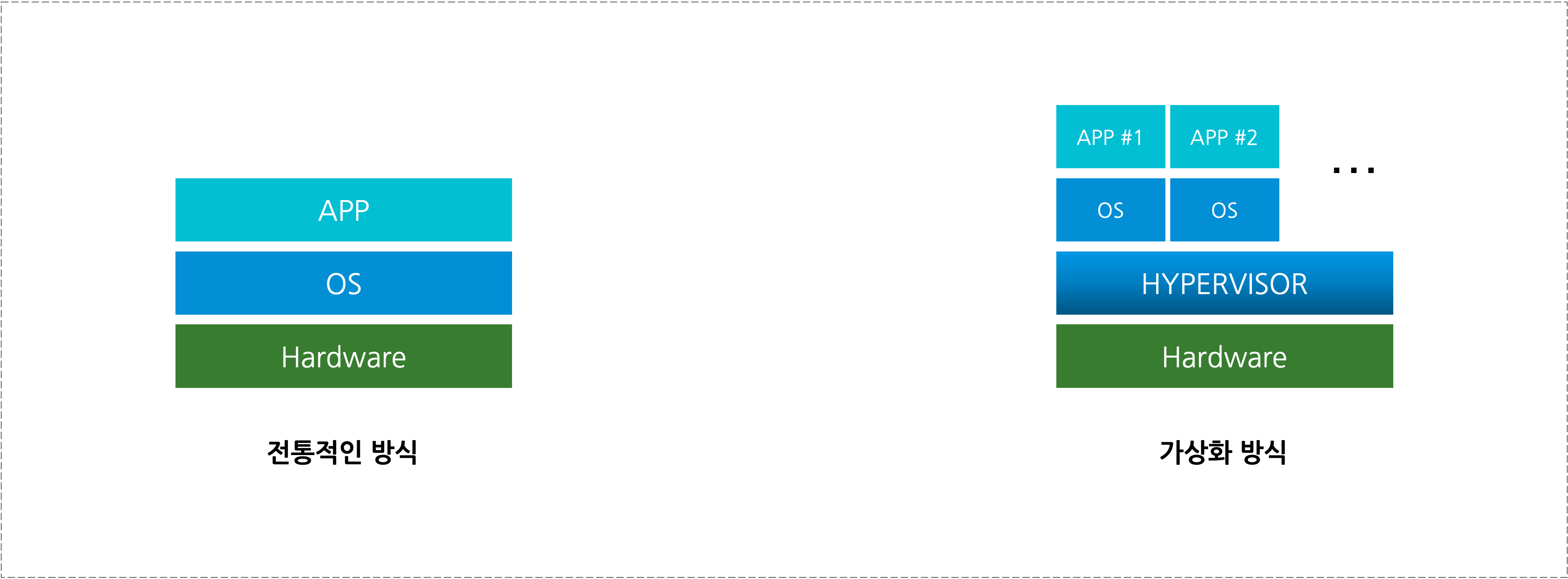 보편적으로는 기존처럼 하드웨어에 곧바로 OS를 설치하는 것이 아닌, 하이퍼바이저를 설치한다.