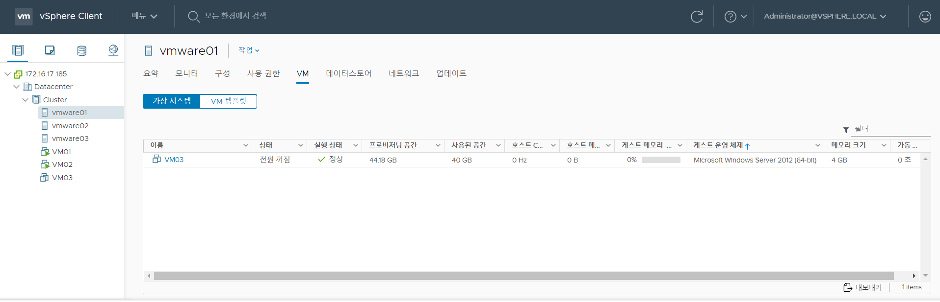 그럼 vCenter에 있는 VM 목록이 보이고,