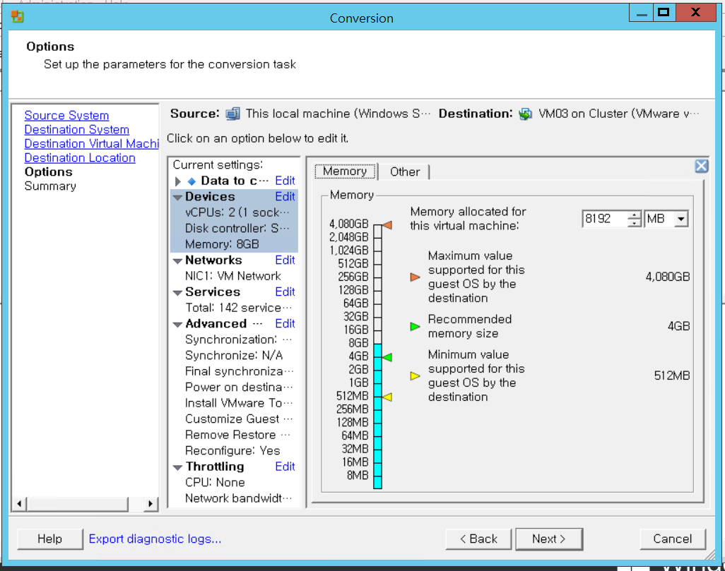 P2V의 경우는 물리 환경에서 가상 환경에 맞게 최적화 해줘야 하기 때문에