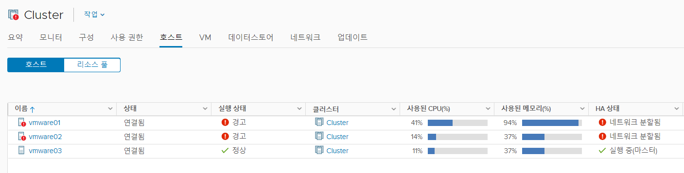 해당 이슈는 관리 네트워크와 vSAN 네트워크 통신이 원활하지 못할 때 발생한다.