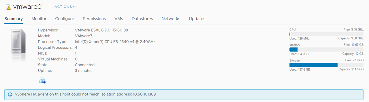 vSphere HA agent on this host could not reach isolation address: Gateway