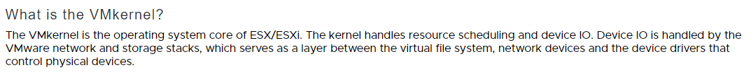 ESXi OS의 마이크로 코어로, VM에 물리 리소스를 추상화하여 할당해주고 디바이스의 I/O를 제어해주는 역할을 수행한다.