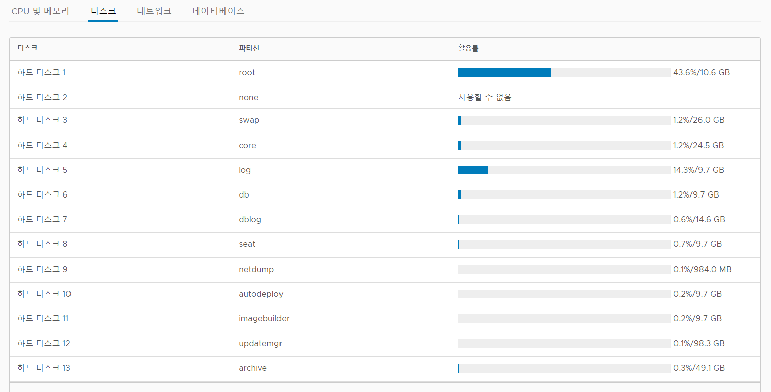 95% 넘게 쌓이면 vCenter 내 서비스가 내려갈 수 있다.