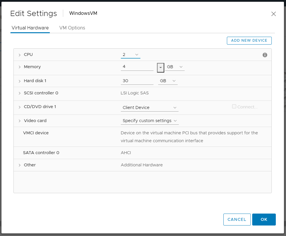 1) UI에서 제거한 경우 (vCenter, vSphere-Client, Edit Setting)