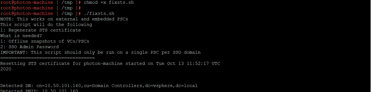이 스크립트는 vmdir 내 데이터베이스와 상호작용하기 때문에, SSO 도메인 당 한 번만 실행하라고 되어 있다.