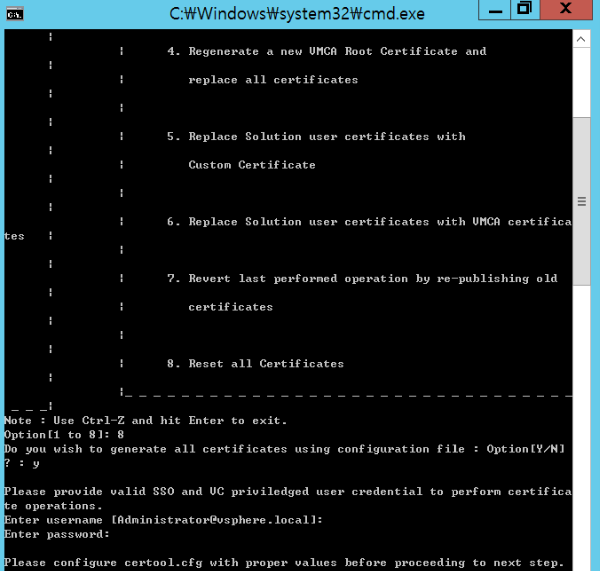 - #/usr/lib/vmware-vmca/bin/certificate-manager // 인증서 all reset을 위한 인증서 매니져 실행