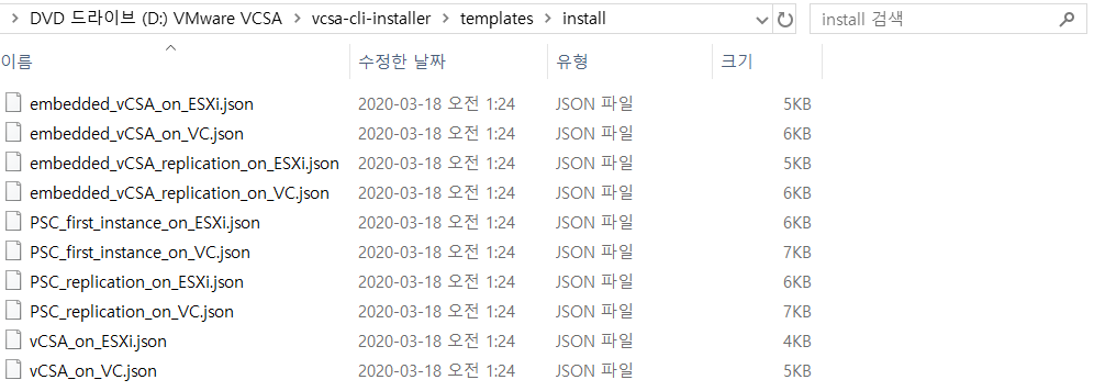 이럴 경우엔 첫 파일인 "embedded_vCSA_on_ESXi.json" 파일을 수정하면 된다.