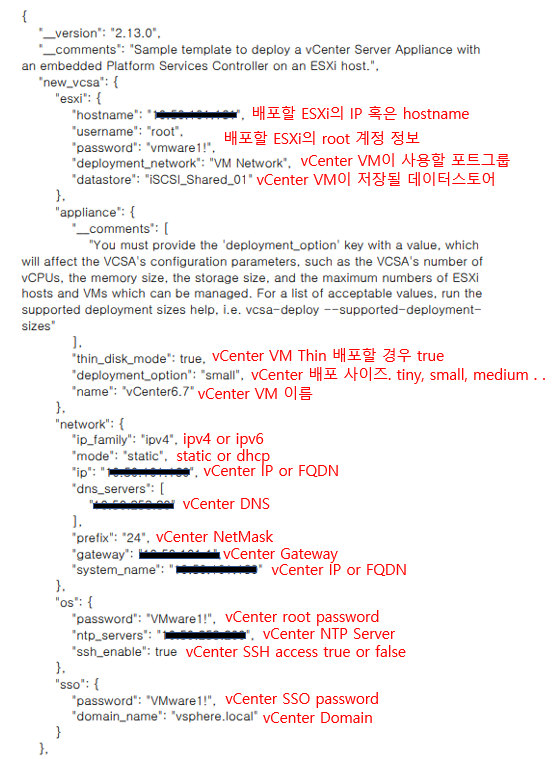 vCenter는 CLI 배포 시 템플릿(JSON 파일)에 구성되어 있는 각 value 값을 참조하여 배포한다.