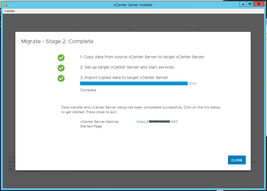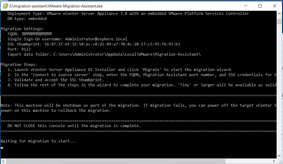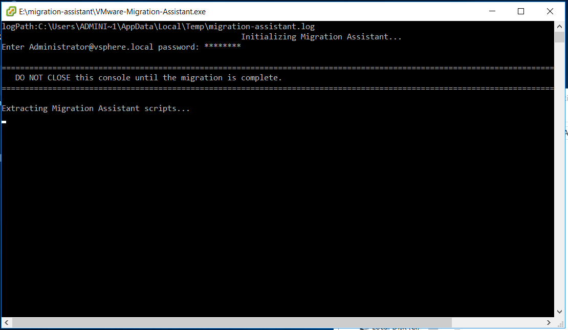 한 5분은 소요된 것 같으니 조금 기다려야 한다. 해당 스크립트는 vCenter Migrate가 완료될 때 까지 닫으면 안된다.
