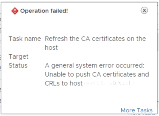 A general system error occurred: Unable to push CA certificates and CRLs to host SERVER