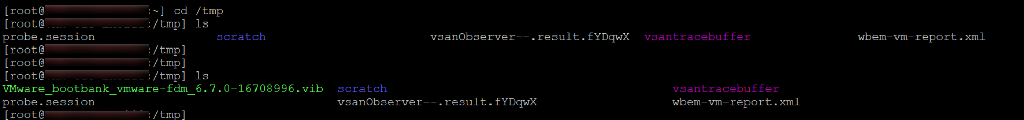 ~#scp {VCSA FDM VIB File} root@{ESXi#01 IP}:/tmp // SCP를 통해 VCSA OS의 FDM VIB 파일을 호스트로 복사