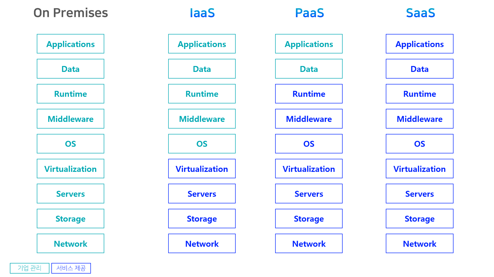 개발에 필요한 환경, 즉 플랫폼까지만 빌려주고 앱과 데이터는 기업이 직접 운영.