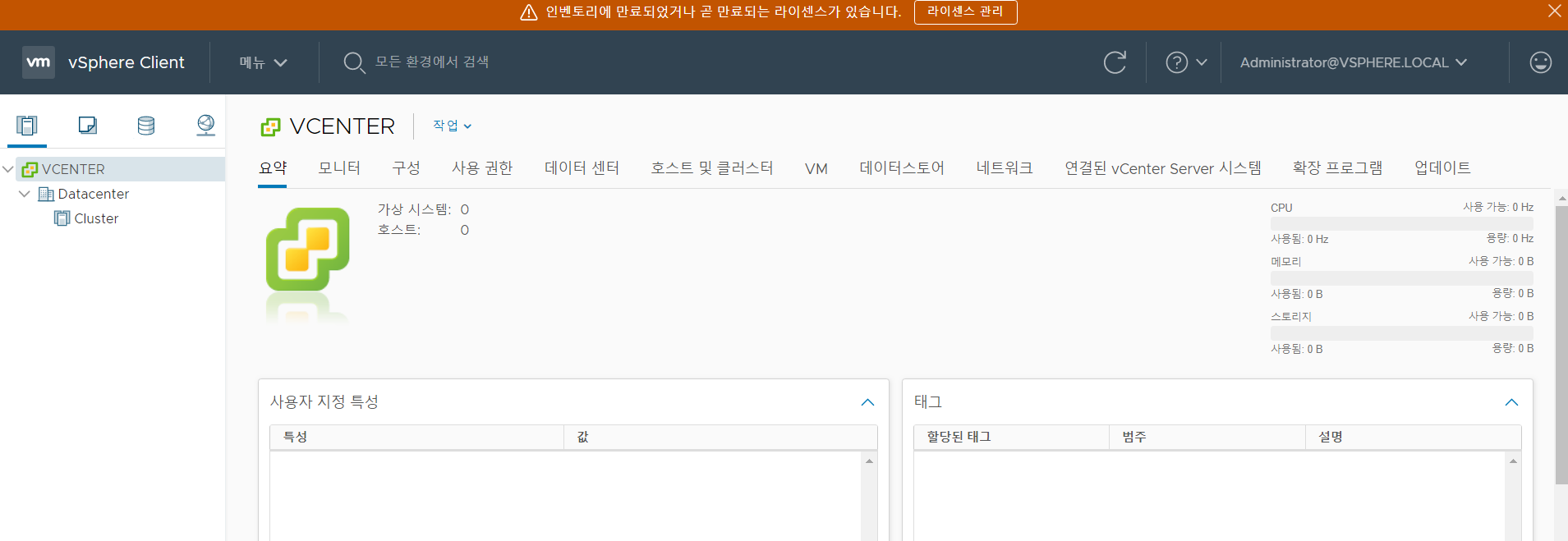 vCenter FQDN이 변경되어 있다.