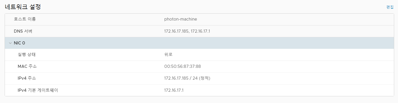우선 네트워킹에 들어가서 네트워크 설정을 편집한다.
