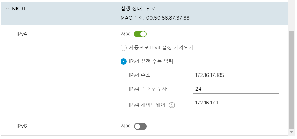 여기서 nic를 열면 IPv4도 수정할 수 있다.