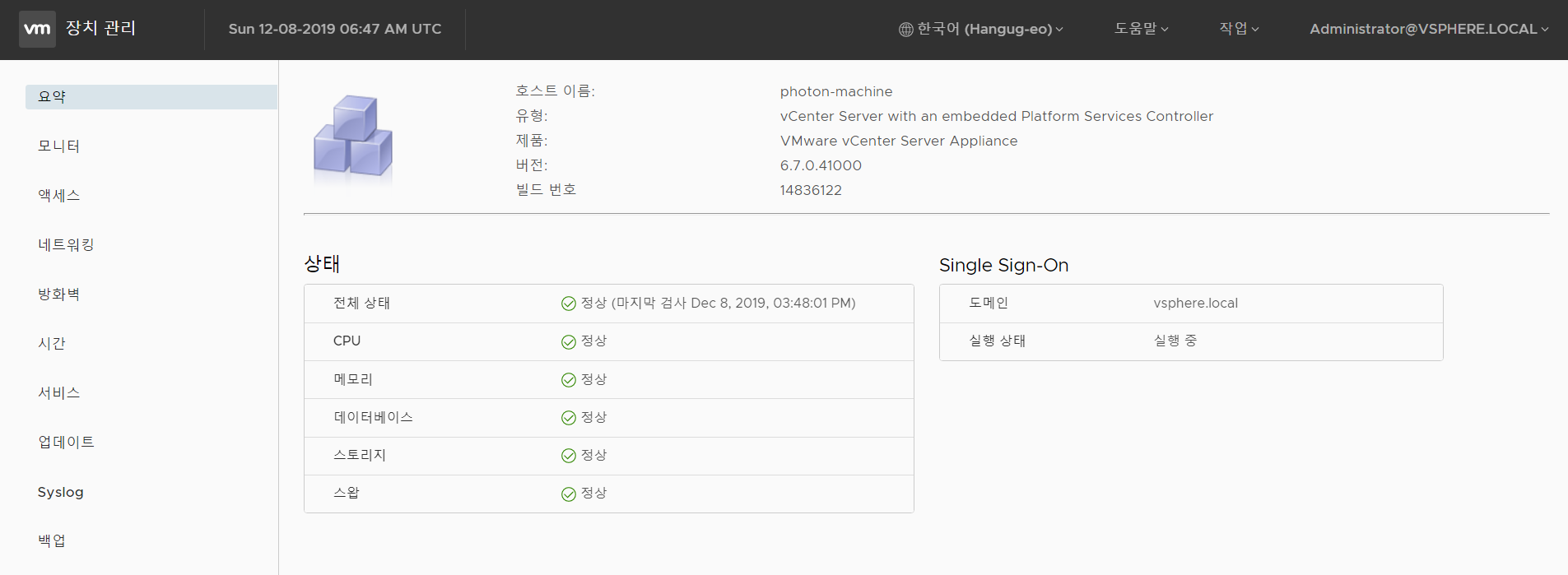 현재 설치된 vCenter의 FQDN (photon-machine)을 테스트 삼아 변경해보기로 했다.