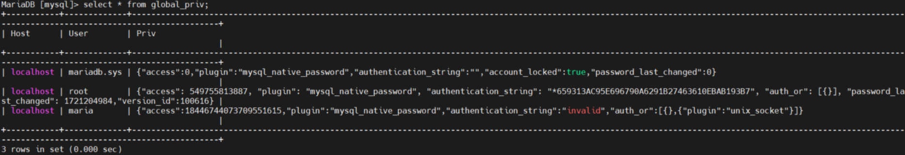 MariaDB에 접속해서 계정에 대해 인증 플러그인 현황을 보자