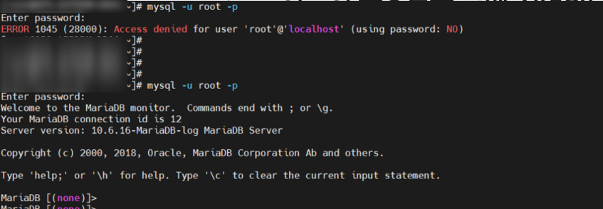 root 패스워드를 입력해야 접근이 되고, 입력하지 않으면 접근에 실패한다.