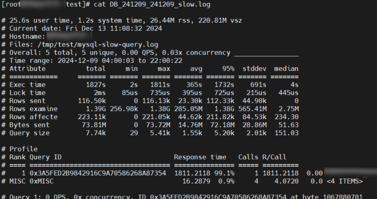 pt-query-digest /tmp/test/mysql-slow-query.log --since='2024-12-09 00:00:00' --until='2024-12-09 23:59:59' > /tmp/test/DB_241209_241209_slow.log