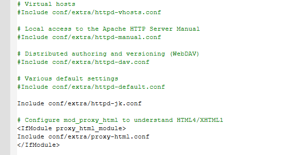 저처럼 별도의 httpd-jk.conf 파일을 따로 만들어서 httpd.conf 안에 Include로 선언해줘도 됩니다.