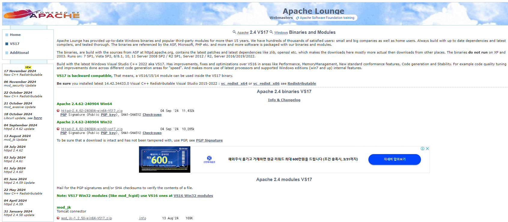 Apache 다운로드 홈페이지에서
