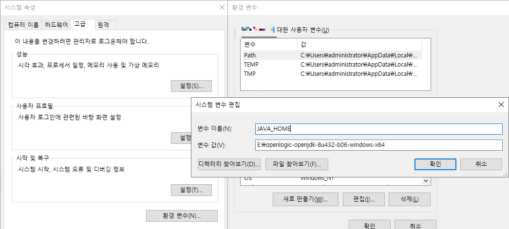 변수 값 : D:\openlogic-openjdk-8u432-b06-windows-x64