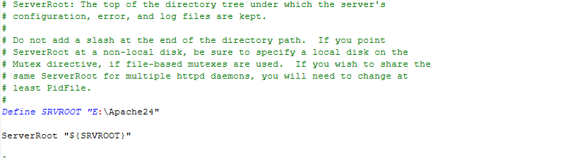 Define SRVROOT "D:\Apache24" // Apache의 root 참조용 디렉토리 설정(실제 경로)