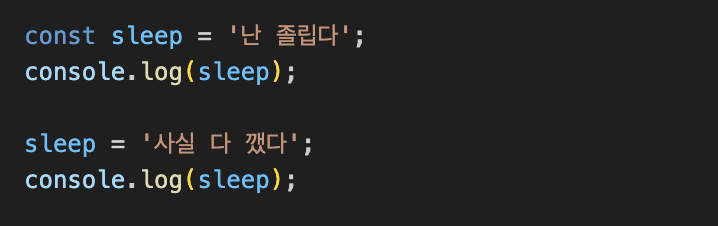 아까 위에 const 는 변수값이 변경되지 않는다고 했었죠?